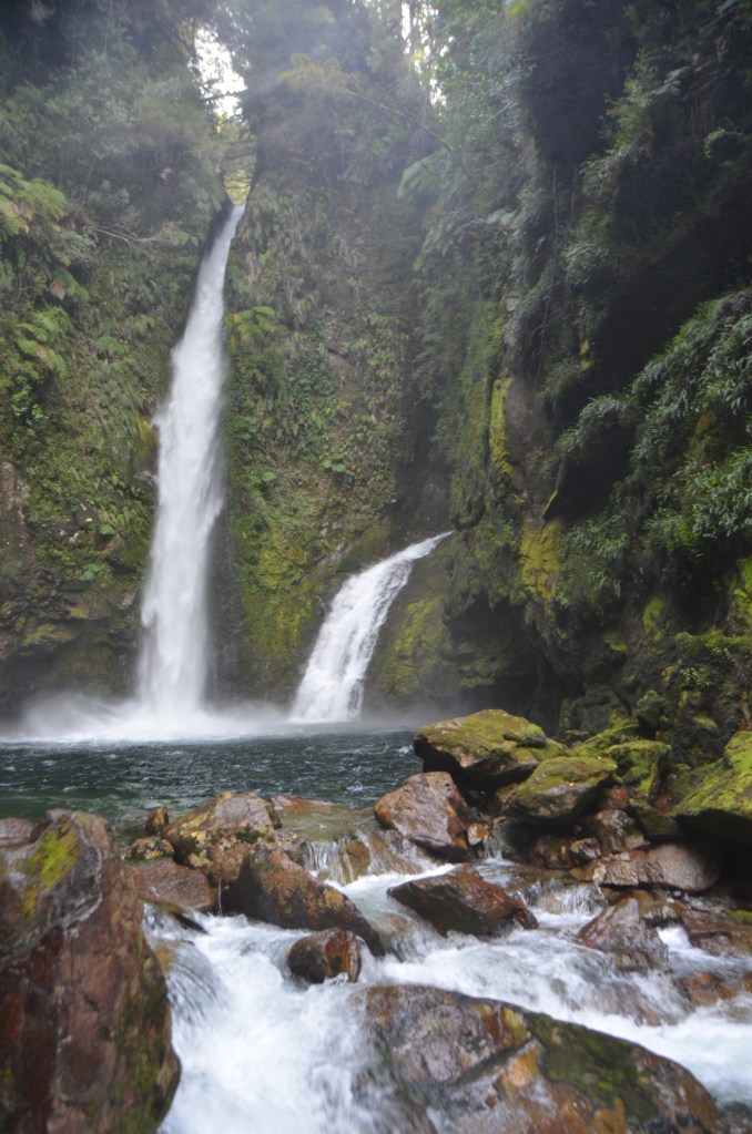 Roberto filled our heads with the many adventures possible in the area. The following day he showed us exactly what he meant. After napping and relaxing by the fire in his cafe during a rainy morning, Roberto dragged us out to drive through private properties to where the road ended. Like a deranged serial killer he pulled out his machete and made the thick brush his victim. We followed behind while he worked to carve a path. The end result was a beautiful and completly closed in waterfall gushing out of the earth.