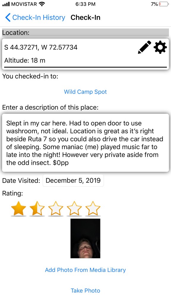 Following the epic rescue and Reid’s 14 hour full back tattoo session we took off, driving nowhere in particular. Our plan was only to head south and to see how far we could get this evening. We pulled over to the side of the road after research on the iOverlander app pointed us to “free camping”. As noted by the app’s reviews it was quaint, while only being passed by vehicles every 10 minutes. However the other occupant (Reid) was blasting music late into the night. 1.5/5 stars.