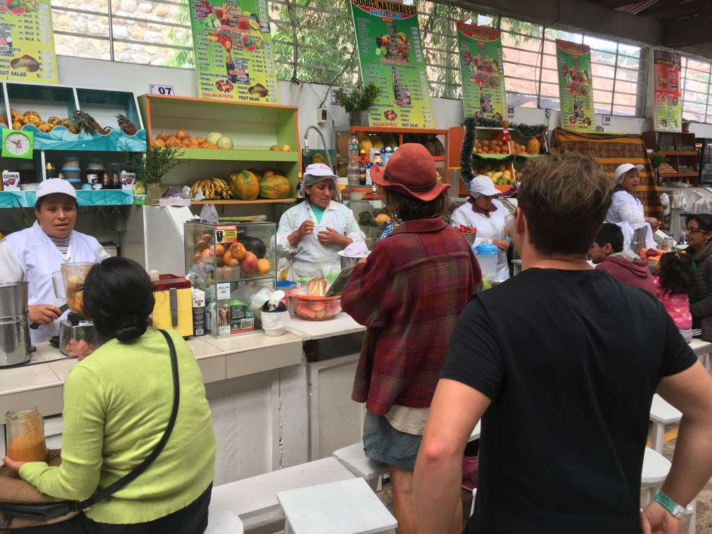 Moey showed up, but Ben was sick. We wandered towards the San Blas market to get some cheap-as (Aus, saying, and no its not spelled wrong) food. It did not disappoint, each person getting a pitcher of fresh juice for $2 and a large meal for $3.