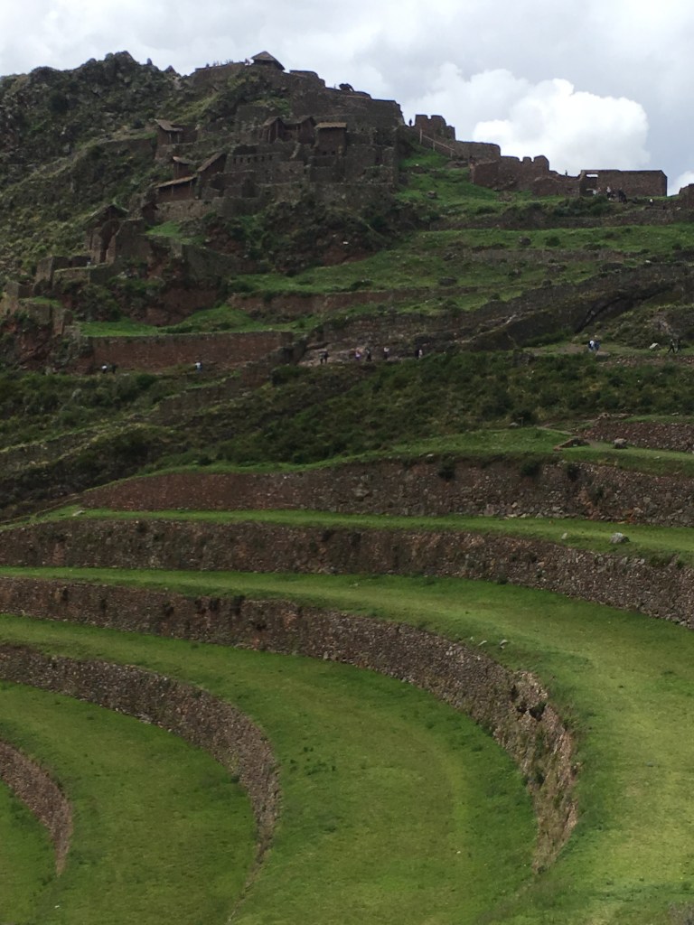 We hopped onto the bus with only a little bit of liquid poop dripping down the leg only to be reassured by the fact that this was going to be another winding road up and down through the infinite Andean mountains. Our first stop was a very cool Incan Terrace overlooking a valley in the mountains. This ancient farmland design inspired Andrew with the amazing grading and use of retaining walls. However despite his kicking and screaming the tour guide dragged Andy aboard citing there was more to come.